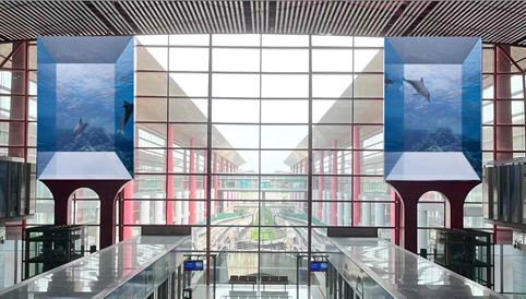 春運期間,首都機(jī)場上新樓內(nèi)景觀,為往來旅客呈現(xiàn)了一場別開生面的視覺盛宴。在3號航站樓內(nèi),一幅絢麗的新春畫卷徐徐展開。