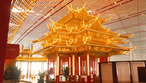 春運期間,首都機(jī)場上新樓內(nèi)景觀,為往來旅客呈現(xiàn)了一場別開生面的視覺盛宴。在3號航站樓內(nèi),一幅絢麗的新春畫卷徐徐展開。