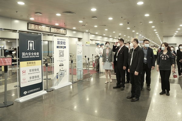4月27日,公司總經理韓志亮、副總經理趙瑩帶隊赴首都機場T2“首都快線”現場踏勘。公司領導一行先后前往海航“京瓊快線”和川航“京蓉快線”值機柜臺、安檢主現場,實地查看了快線產品上線情況。公司領導強調,要與相關航空公司加強合作,確保旅客權益落地,提振首都航空市場,共塑“首都快線”品牌。